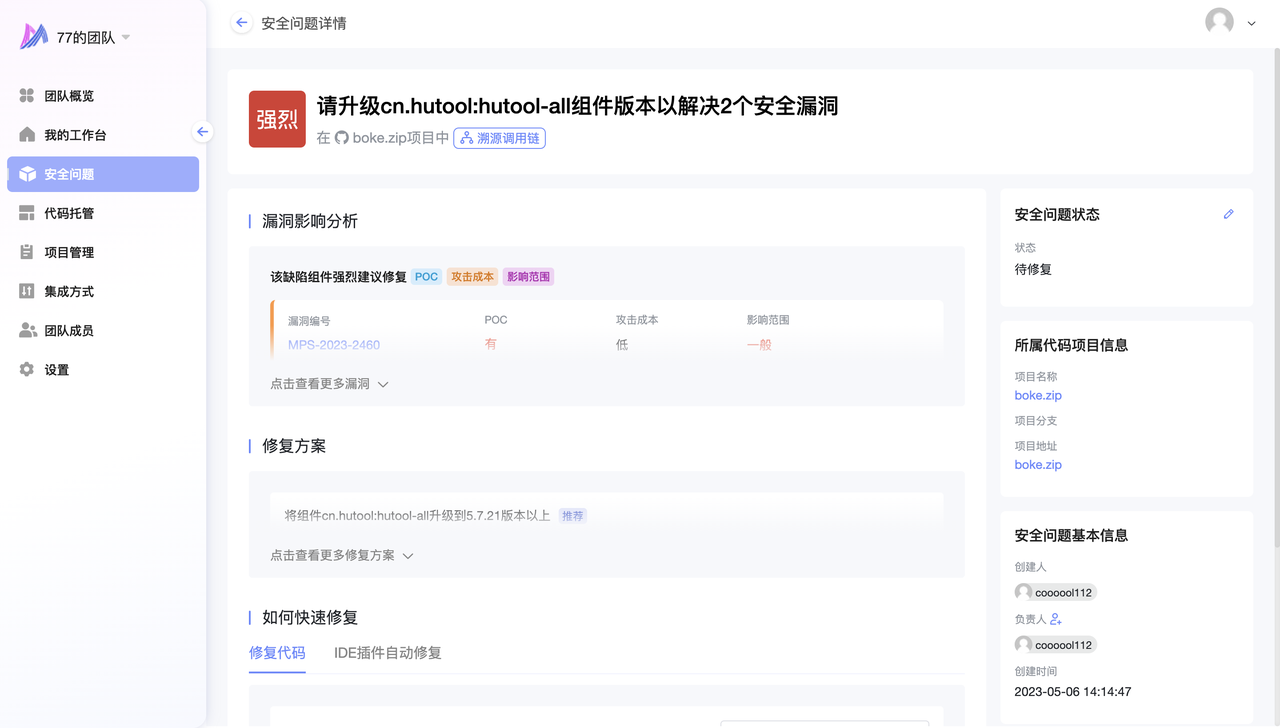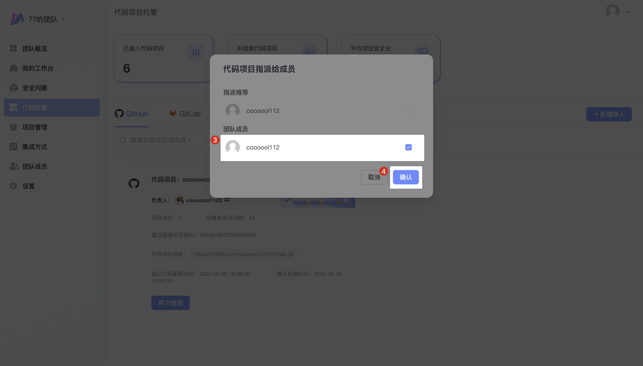 指派代码项目可以更改项目负责人,指派项目的实际负责人来进行项目安全管理。