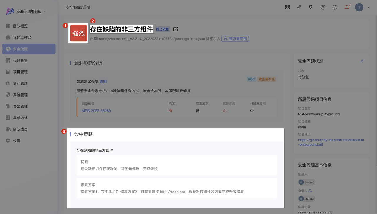 ¶ 2.2 在墨菲安全服务平台,设置 标记为缺陷组件 的策略配置