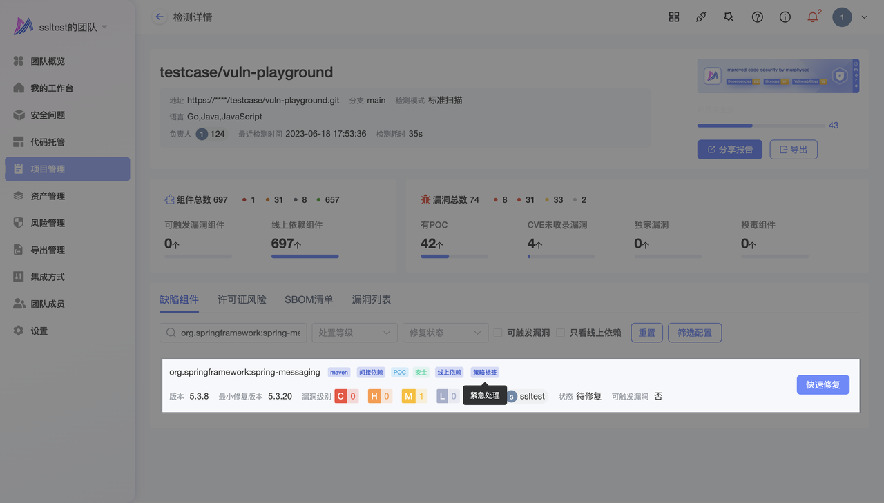 本文档将为您介绍如何设置检测策略,以及当设置的检测策略被命中时,对组件的处理方式。包括介绍打标签、标记为缺陷组件两种的不同处置动作以及组件详情的展示。