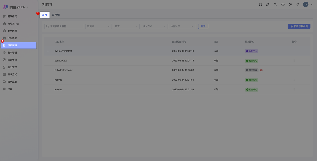 可以通过项目管理中的项目 / 项目组去查看检测完成的项目