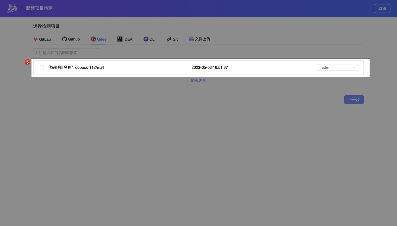 - 选择检测仓库