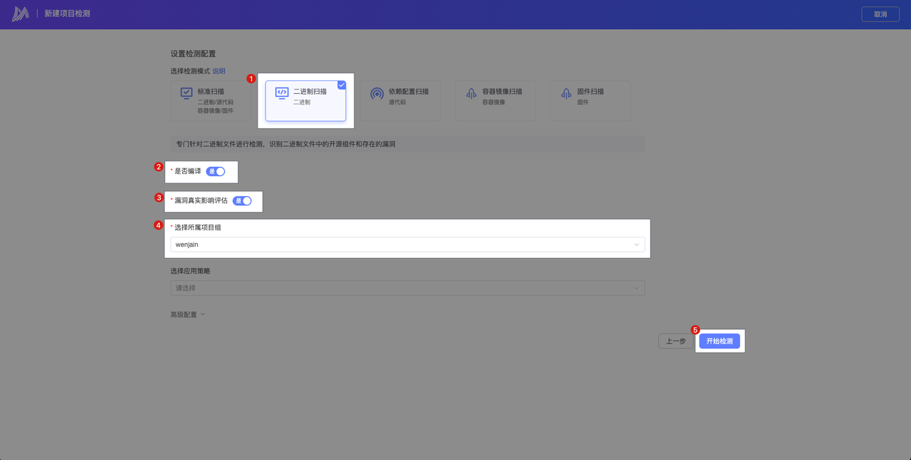 方式二:二进制扫描 介绍:专门针对二进制文件进行检测,识别二进制文件中的开源组件和存在的漏洞