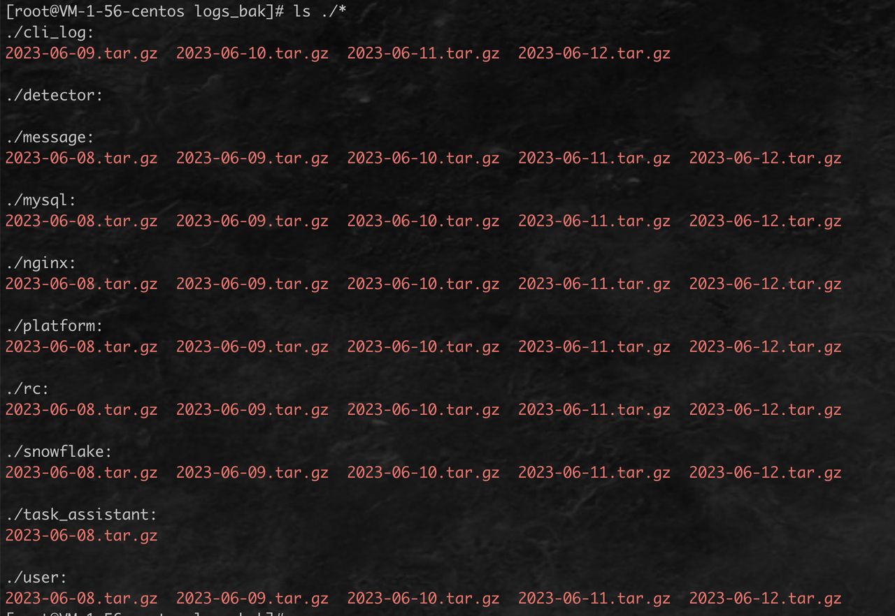 # 该目录下的服务目录为每个服务的日志备份目录,您可以选择删除目录内的 tar 包,但请勿直接删除目录!